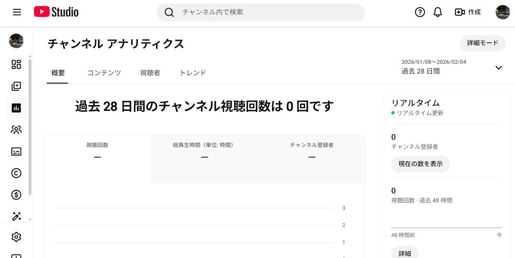 チャンネル全体の健康状態をチェックする際に、まず見るべきタブです。毎日の定期チェックに最適な場所だと言えるでしょう。
