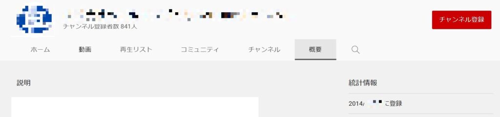 チャンネル名で検索した場合は、概要の一部が下記赤枠のようにトップページに表示されています。