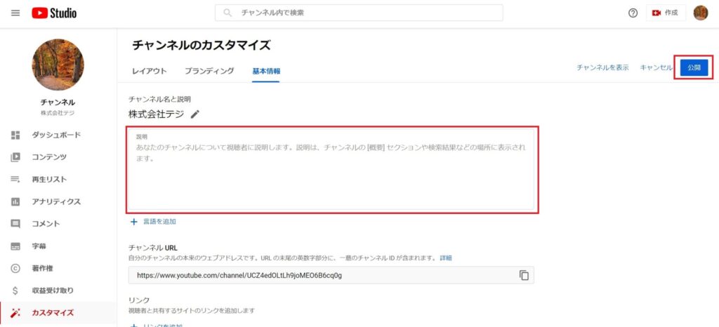 ここからは、アイコン設定、概要欄の記載などチャンネルカスタマイズを中心に設定を解説していきます。