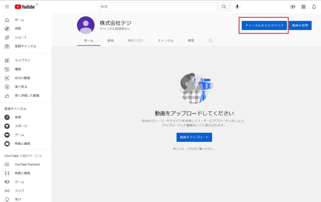 まず、ホーム画面の右上「チャンネルをカスタマイズ」をクリックします。