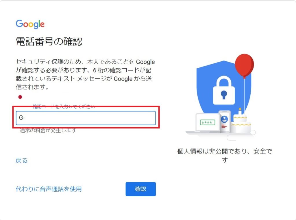 電話番号宛に届いたショートメッセージより、6桁の確認番号を入力しましょう。
