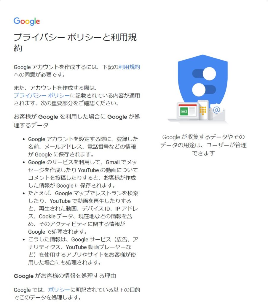 下記の画像のようになれば、Googleアカウントの作成は完了です。