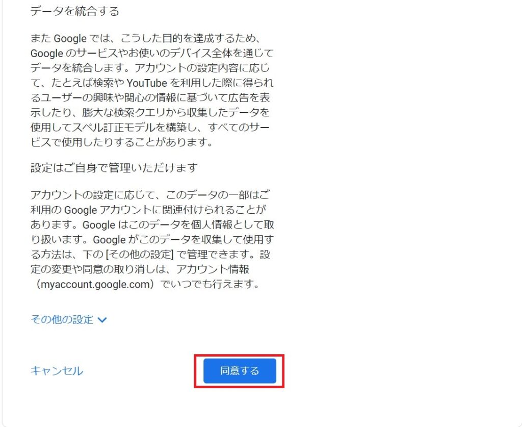 プライバシーポリシーと利用規約を読み、下にスクロールをして「同意する」をクリックします。
