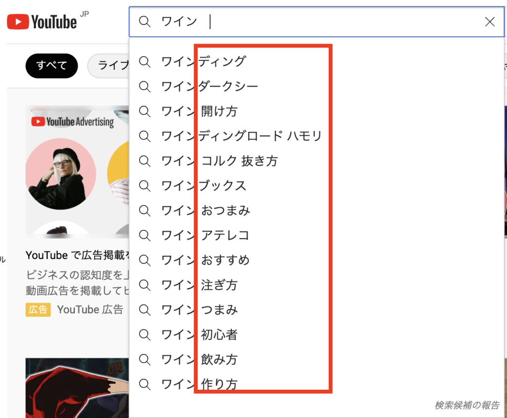 これらの検索ワードがYouTube上でどれだけ検索されているかを調べることも大切です。