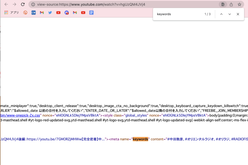 ③コードが羅列されている画面で「CTR+F」macの場合は「command+F」を押し、ページ内検索をして「keywords」と検索してみてください。