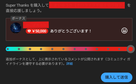 スーパーサンクスは、視聴者が動画に対して直接金銭的な支援を送れる機能です。